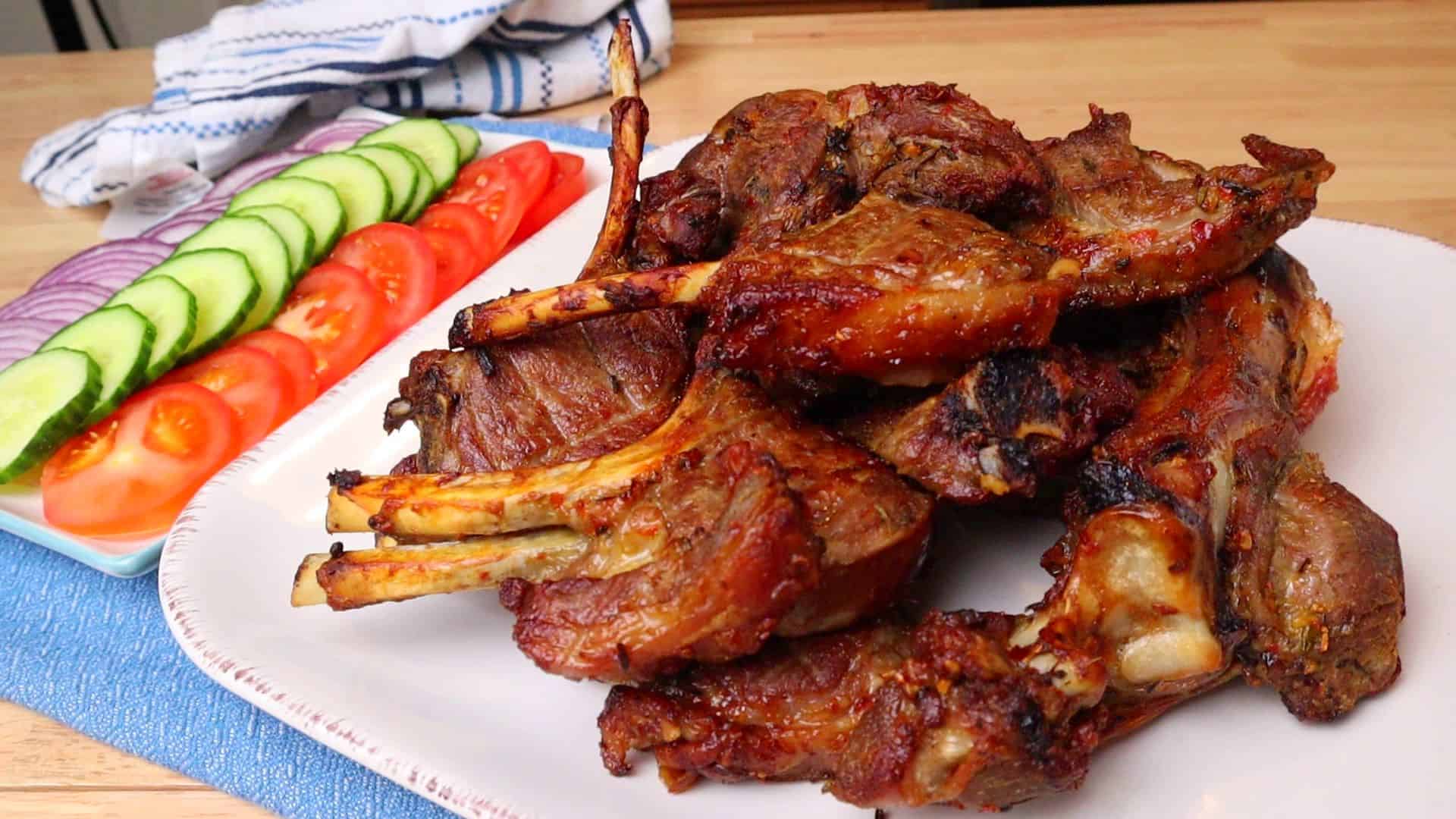 - Place lamb meat on baking tray with rack