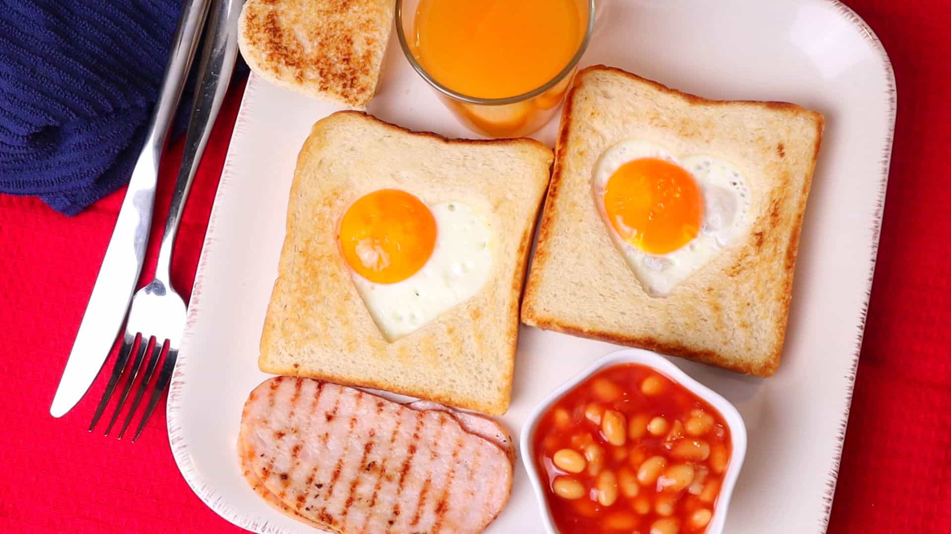 The Full Valentine’s Breakfast ln Bed will Surprise the Loved one More Than A Gift. 2 TOAST with EGGS, RASHERS, BAKED BEANS, and ORANGE JUICE. The Best and Easy Valentine Breakfast recipe excellent for Valentine’s Day.
